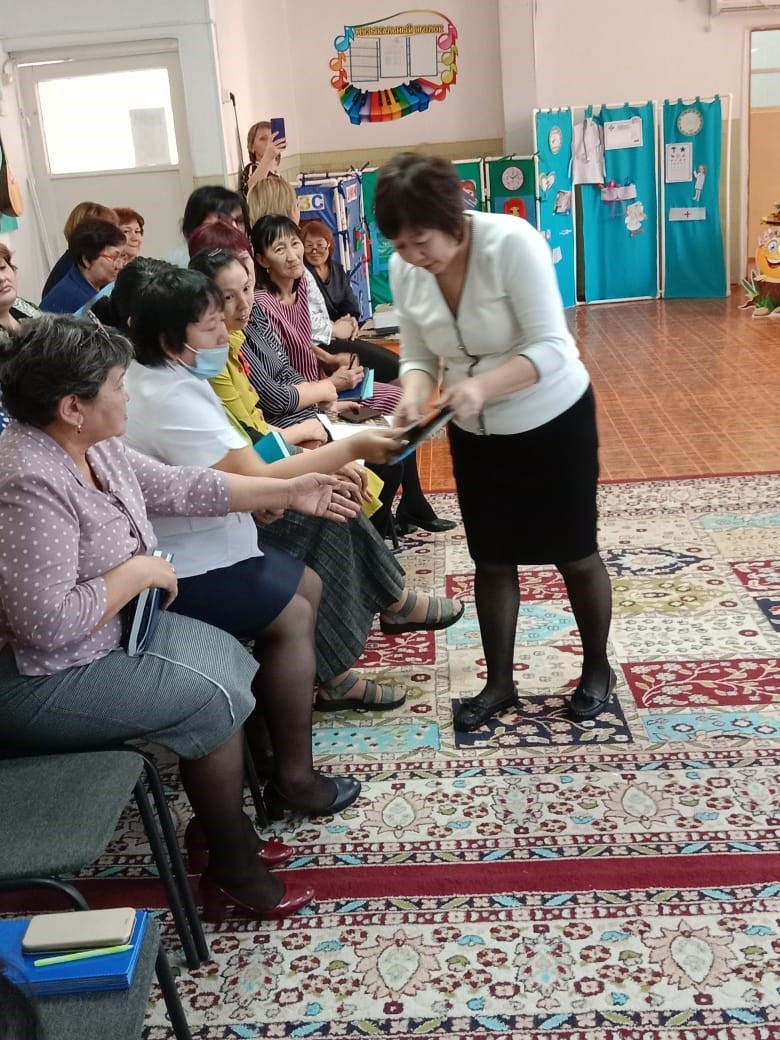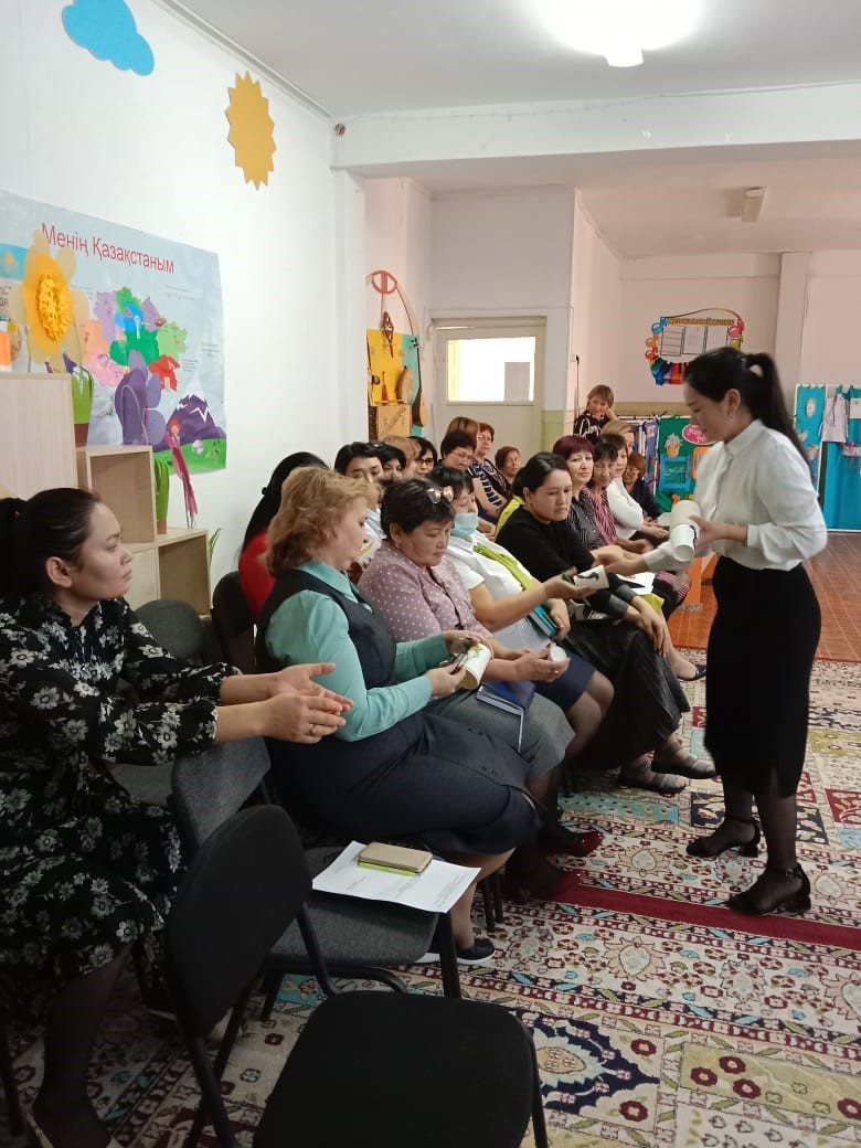 Кеңесте бірқатар мәселер талқыланып, тәрбиешілер пәндік дамытушы орта құру туралы мағлұмат берді. Бағдарлама бойынша жаңа ұсыныстар аясында ойын,ойын құралдарын, материалды практика жүзінде көрсетті. Кеңес отырысына б/б әкімшілігі толық құрамда қатысты. Тәрбиешілер тарапынан қойылған сауалдарға жауап берілді.