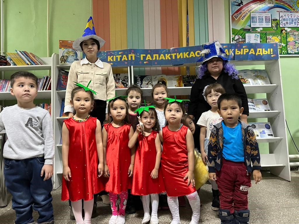 Облыстық Байғанин атындағы кітапхананың ұйымдастыруымен өткен “Ымырттағы кітапхана” жобасы аясында “Кітап галактикасы шақырады” атты тақырыбындағы әдеби ойын өткізілді. Осы іс-шараға бөбекжай-балабақшамыздың “Күншуақ” пен “Балапан” топтарының бүлдіршіндері мен ата-аналары кітап галактикасына саяхат жасады. “Күншуақ” тобы “Шалқан” ертегісін сахналаса. “Балапан” тобы “Бүлдірген” биін билеп өз өнерлерін көрсетті.