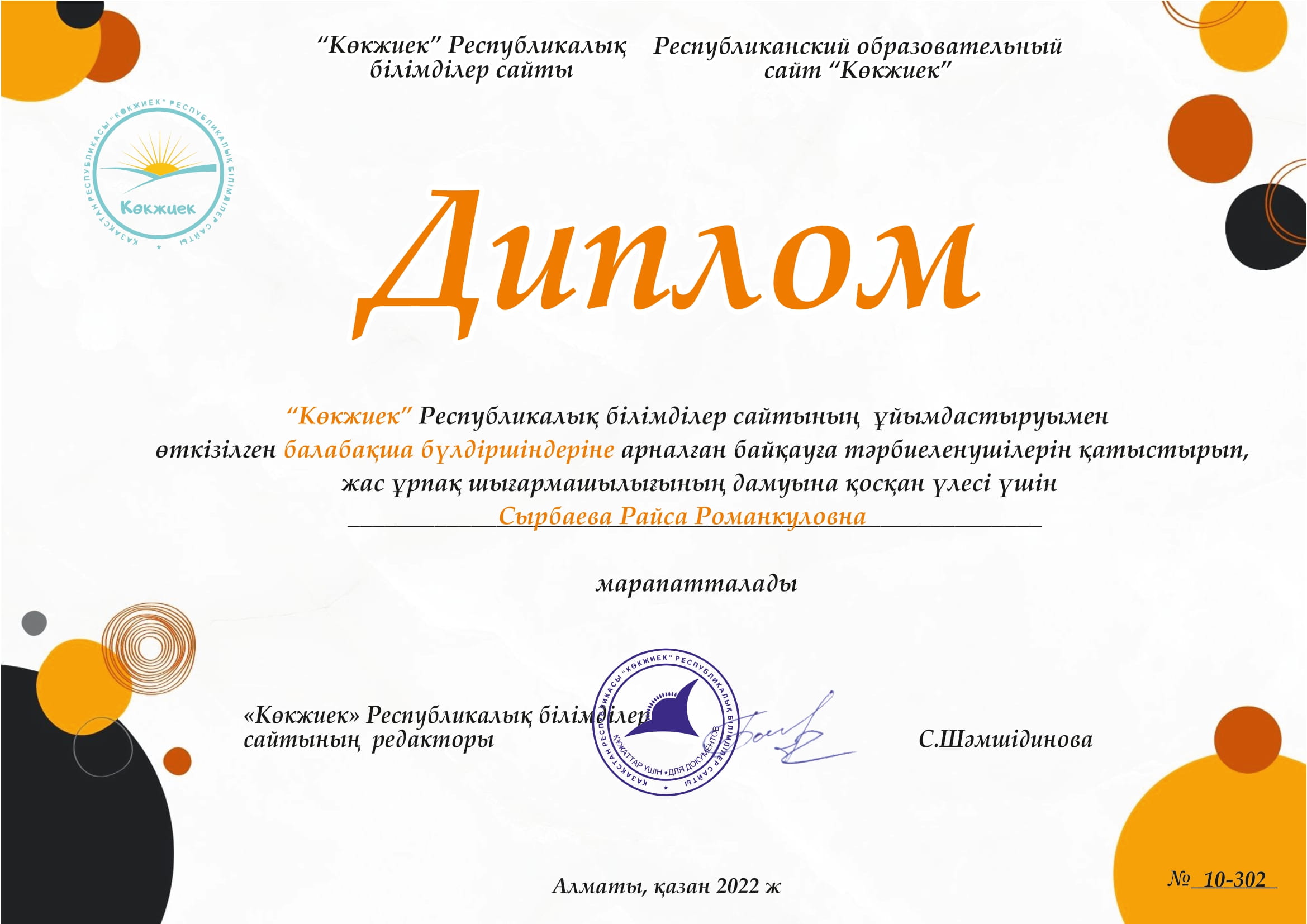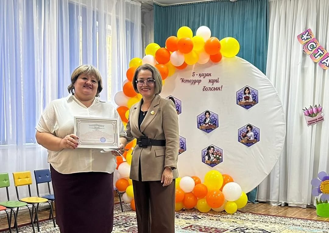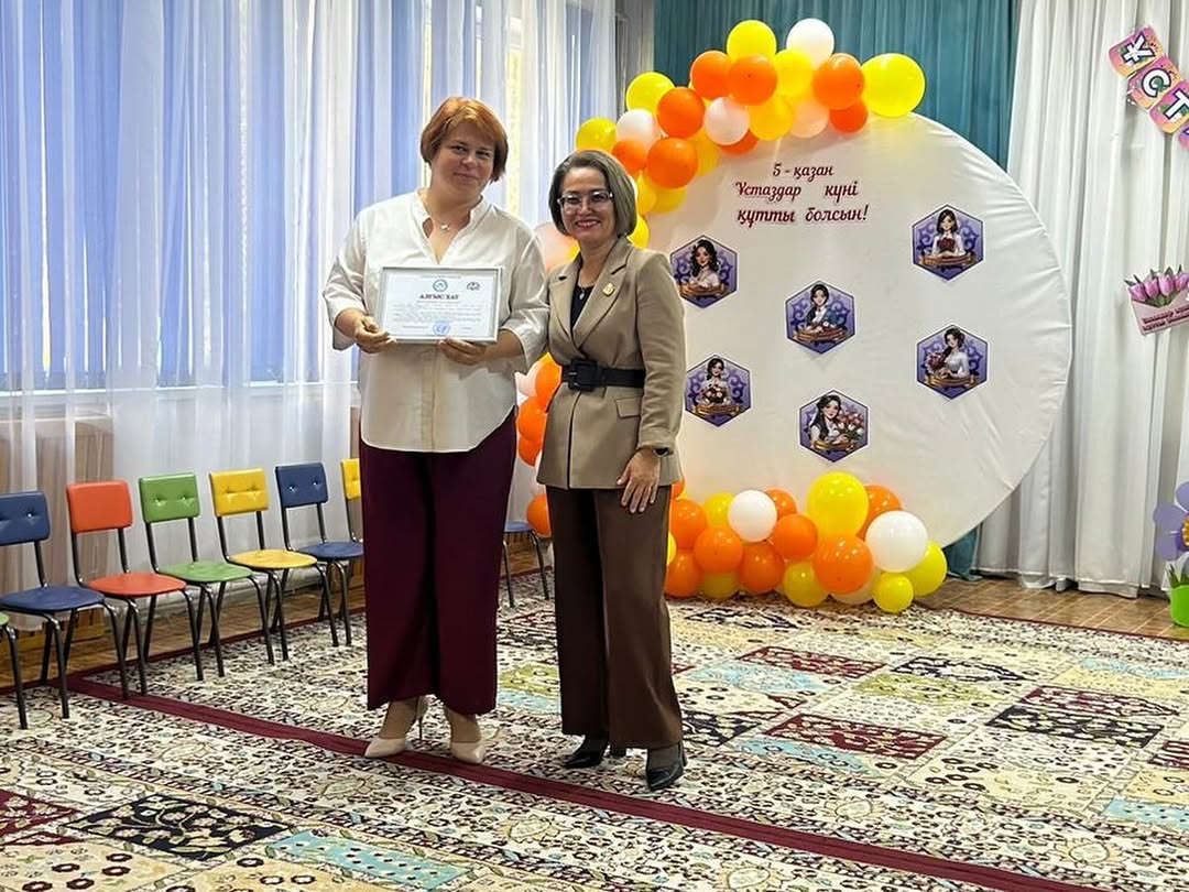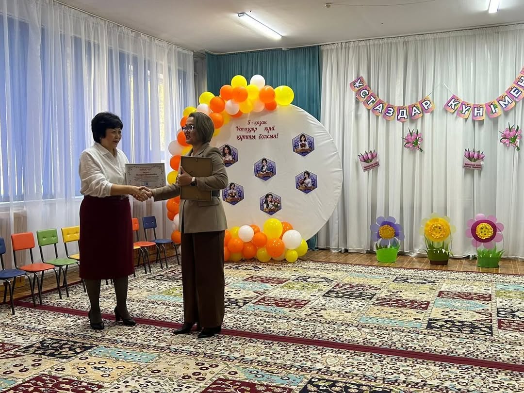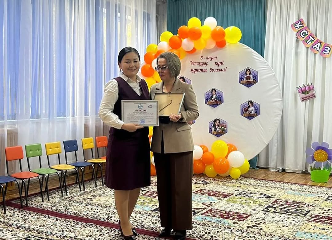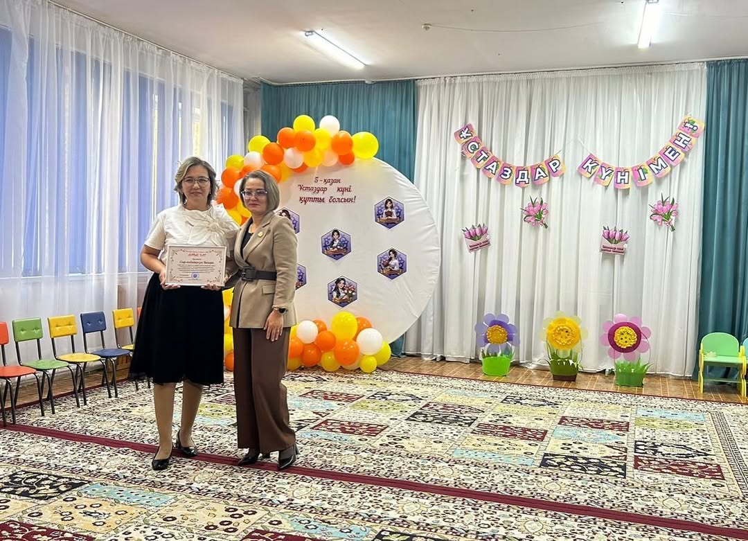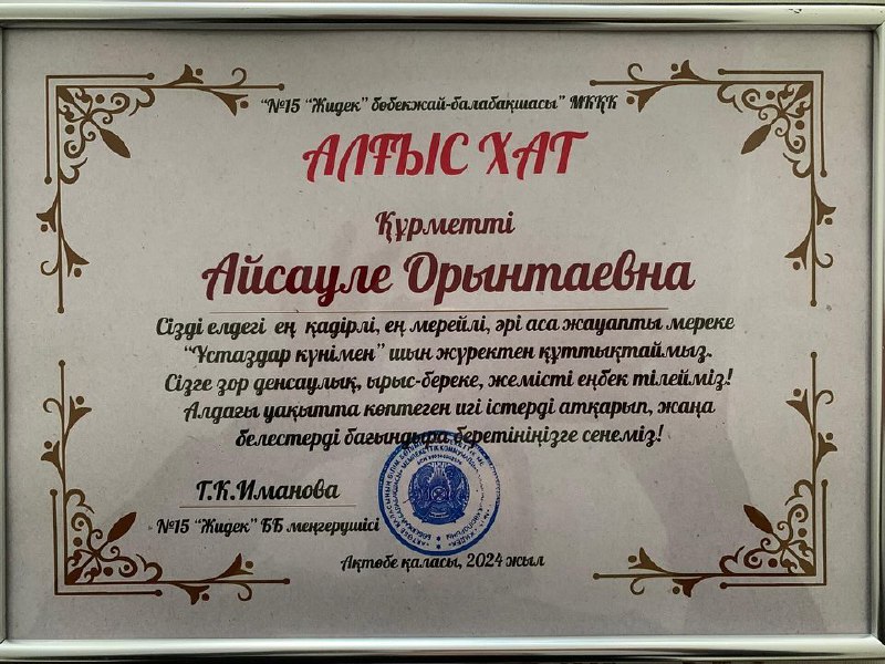 Ұстаздар күні қарсаңында бақшамыздың дене шынықтыру маманы Айсауле Орынтаевна 15 ”Жидек” бөбекжай балабақшасы МКҚК Алғыс хатымен марапатталды!