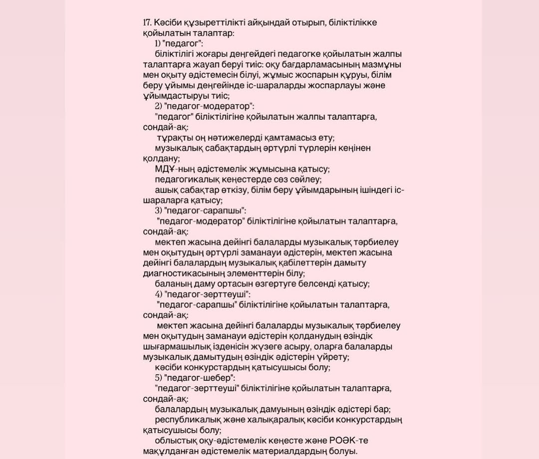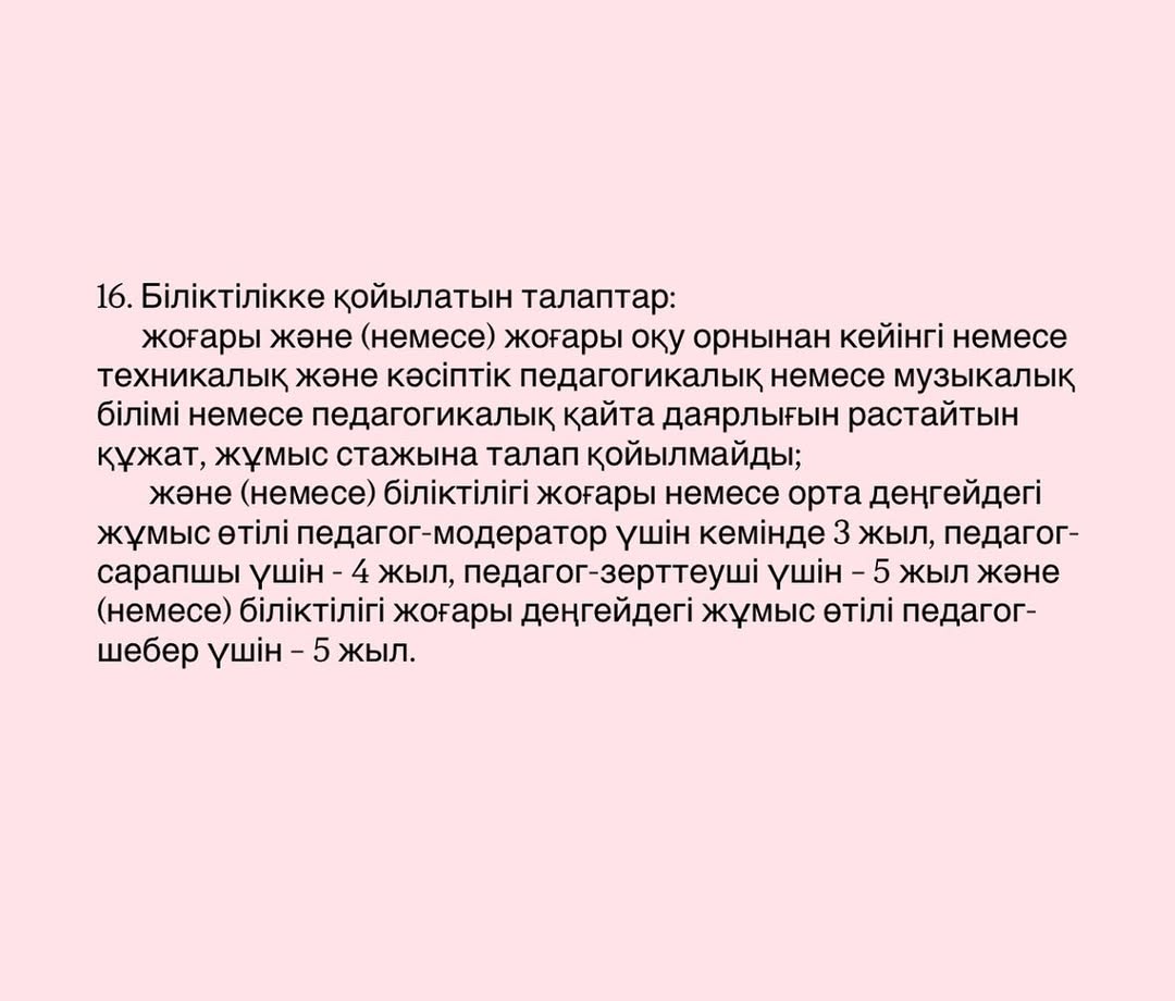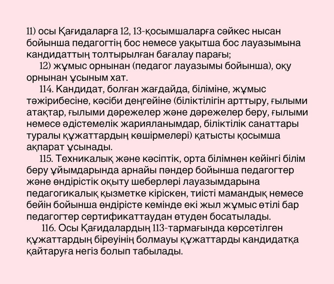 "Мемлекеттік педагогтерін лауазымға тағайындау, лауазымнан босату қағидаларын бекіту туралы" Қазақстан Республикасы Оқу-ағарту министрінің 2025 жылғы 31 наурыздағы № 57 және Қазақстан Республикасы Еңбек және халықты әлеуметтік қорғау министрінің 2025 жылғы 31 наурыздағы № 96 бірлескен бұйрығы негізінде өтеді.